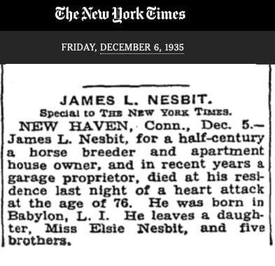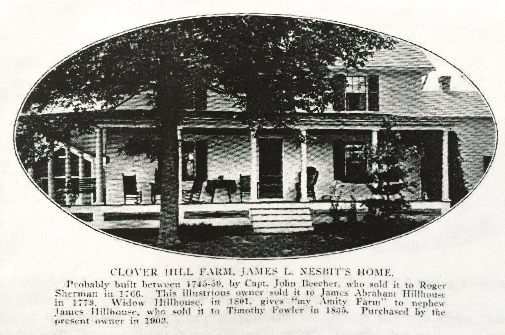 Described as 'the James L. Nesbit Home,' this is the same house featured on page four of the book Woodbridge Hills, published in 1911 by the Woodbridge Civic Association. James L. Nesbit (1859-1935) was born in New York and according to his obituary in the New York Times had been "for half a century a horse breeder” when he died in his home in Woodbridge in 1935.