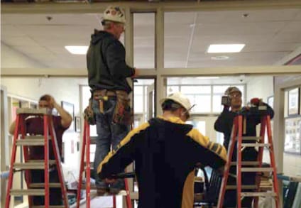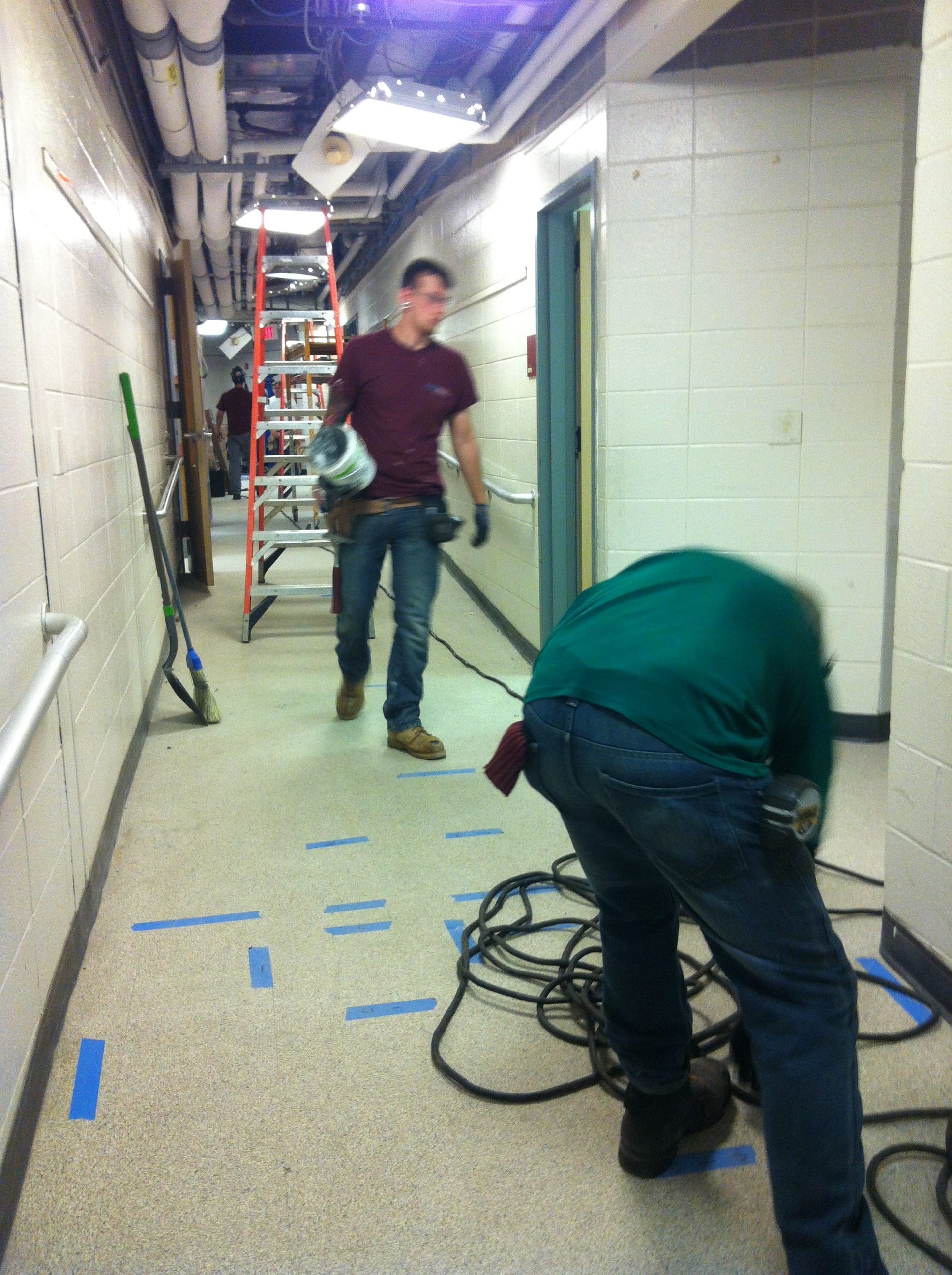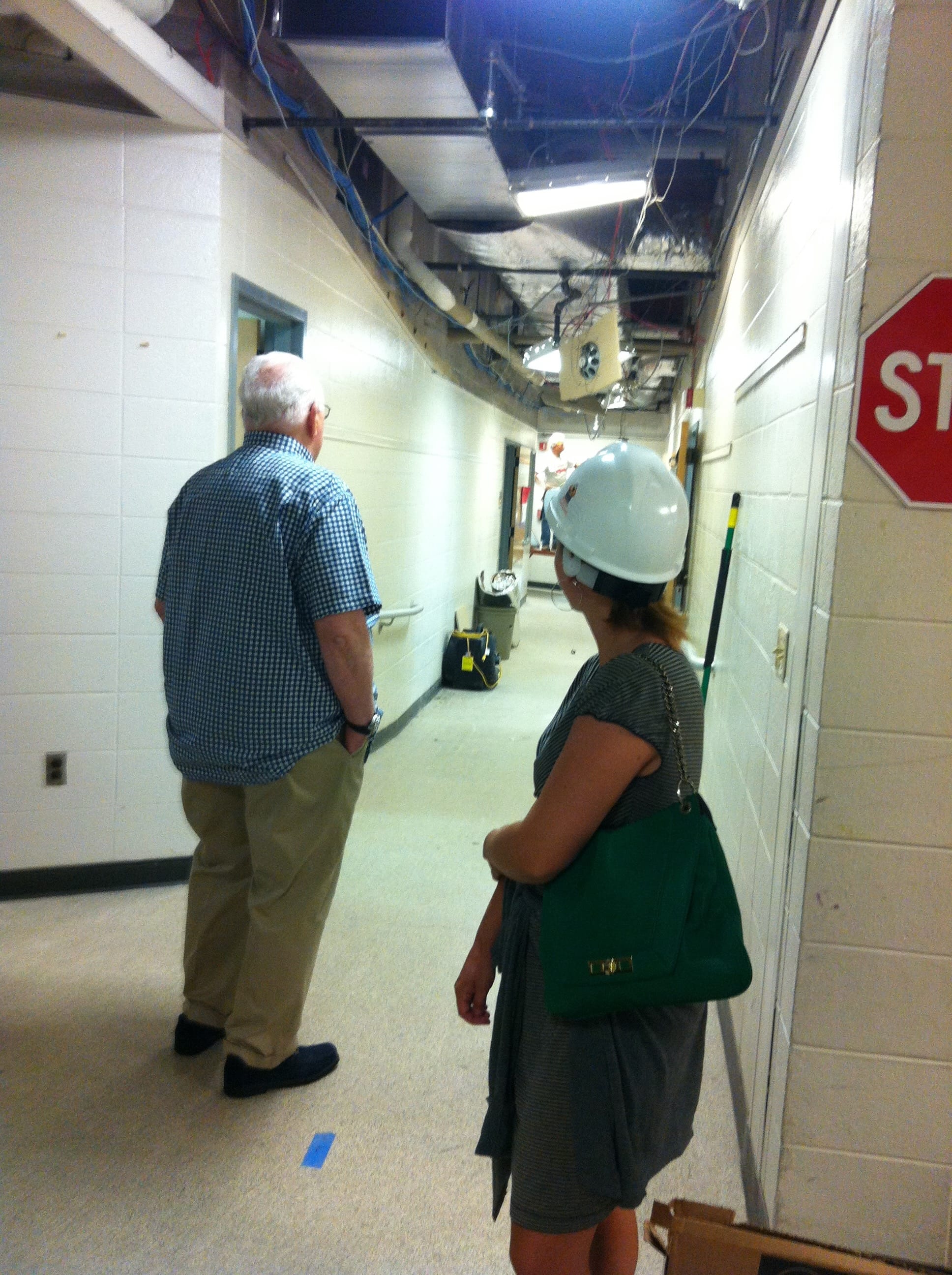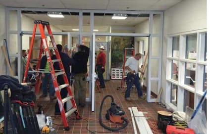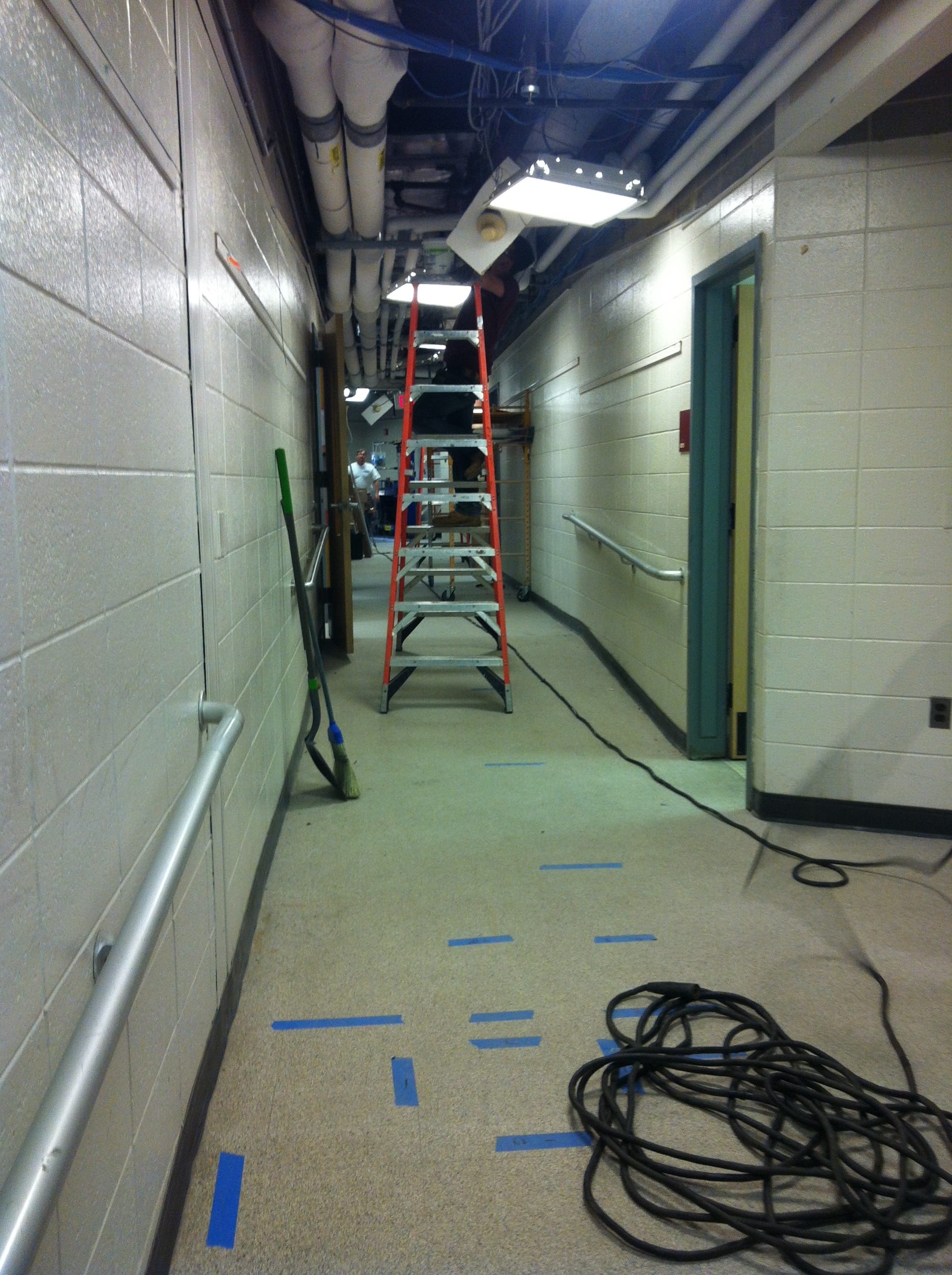 Beecher's south hallway as HVAC equipment is installed, and north entryway security measures under construction