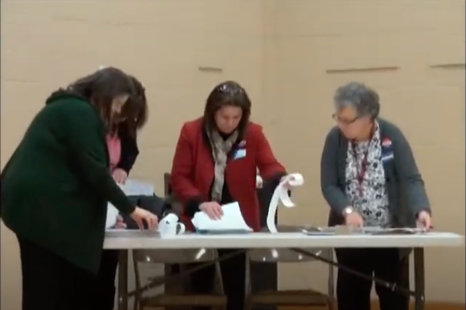 The referendum's ballot question and poll workers hard at work tabulating the results