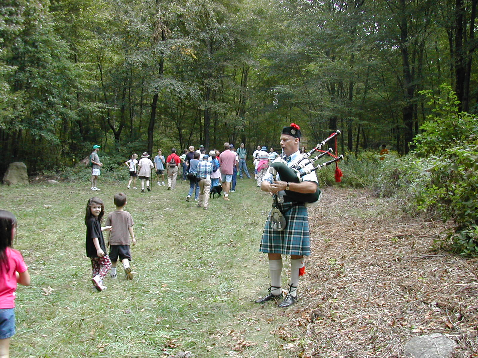 The mayor of the Village of Elderslie in west central Scotland was the guest of honor and spoke to a small crowd of celebrants. After the ceremony, a bagpiper lead the assembled from 'Rose Ridge' (the former Wallace family home) up Peck Hill Road to the entrance of the preserve where a hike of the newly dedicated property was enjoyed by young and old alike (see event photos, below).