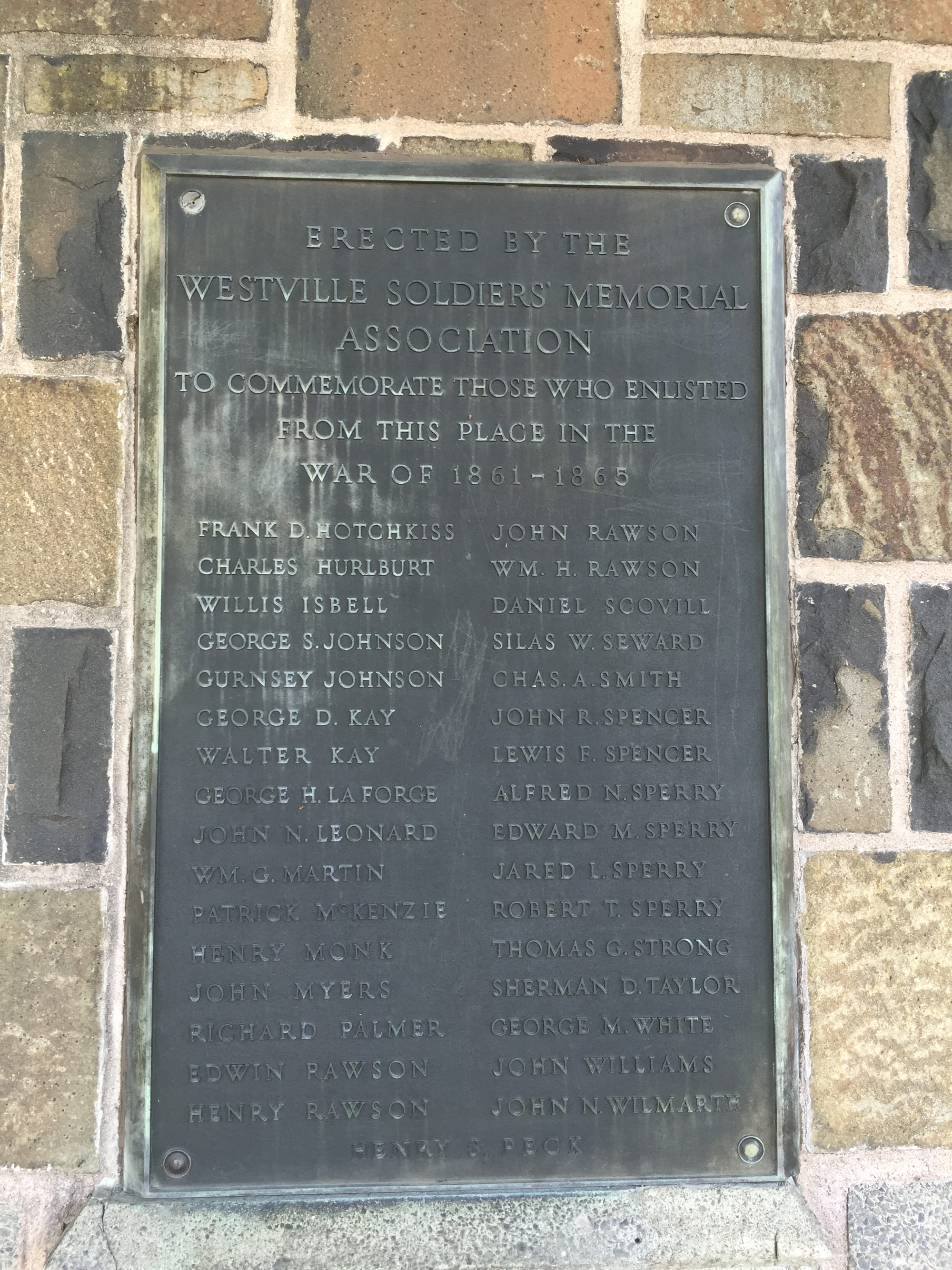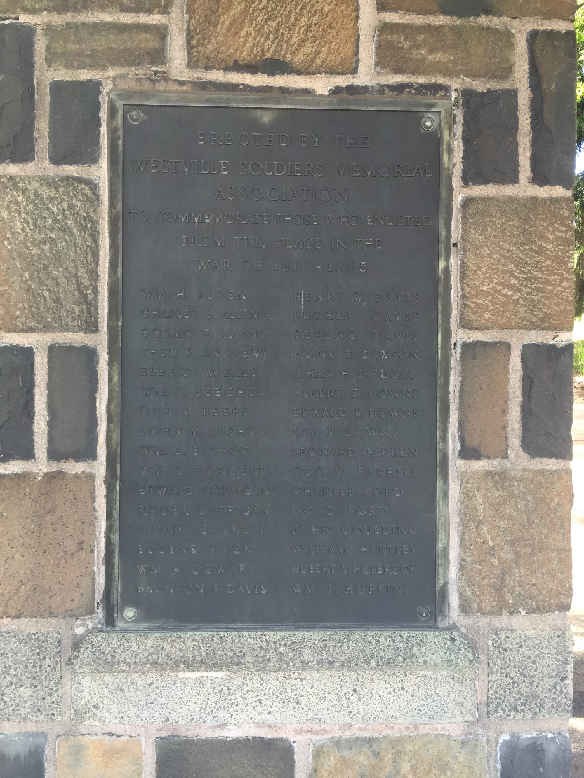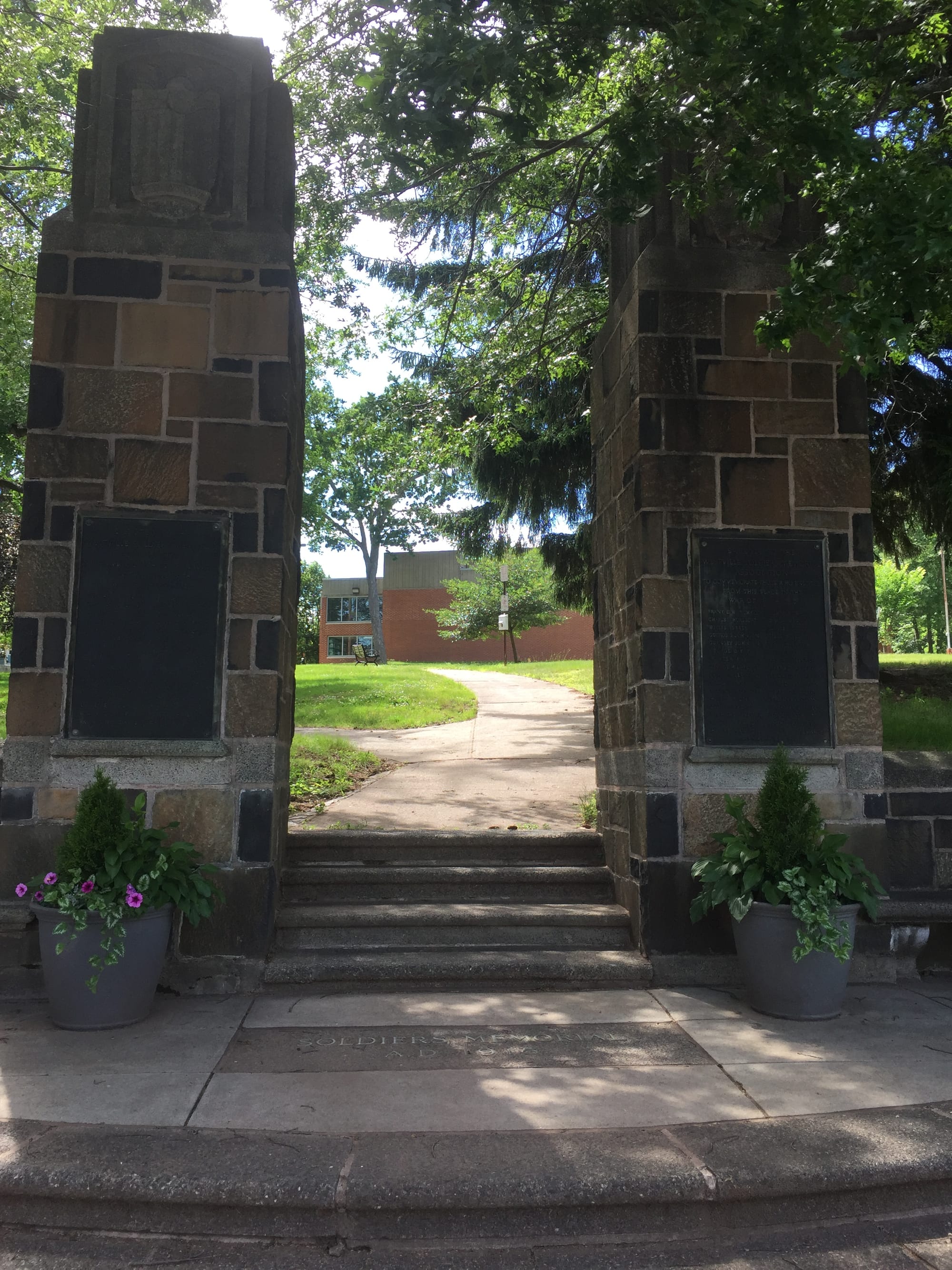 At the entrance to Beecher Park in Westville, the Soldiers' Memorial Gateway, dedicated in 1915,