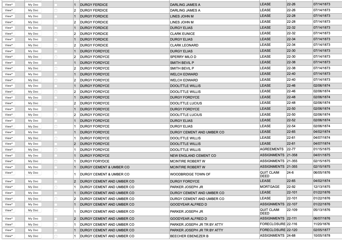 Land records from 1873 to 1876 show Fordyce Durgy assembling a patchwork of leases from neighboring landowners — a veritable 'Who’s Who' of old Woodbridge families, including the Sperrys, Pecks, Clarks, Doolittles, Smiths, and Carringtons — as he and his partners worked to build the infrastructure needed for their cement operation.
