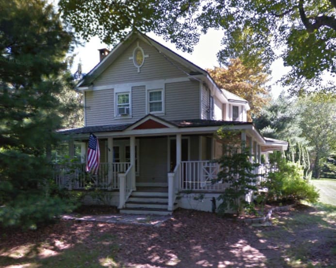 Continuing up Johnson Road as it takes a sharp left turn (where the present day Woodfield Road intersects), the Beers map shows a dotted line that appears to roughly trace what would later become Woodfield Road. Our narrator informs us, “The next on the conner of the old road was the Sherman homestead, later owned and occupied by Mr. & Mrs. Marks.” He is referring to the house pictured at left in the middle row of the photo gallery, which was demolished recently (the photo is from 2011).