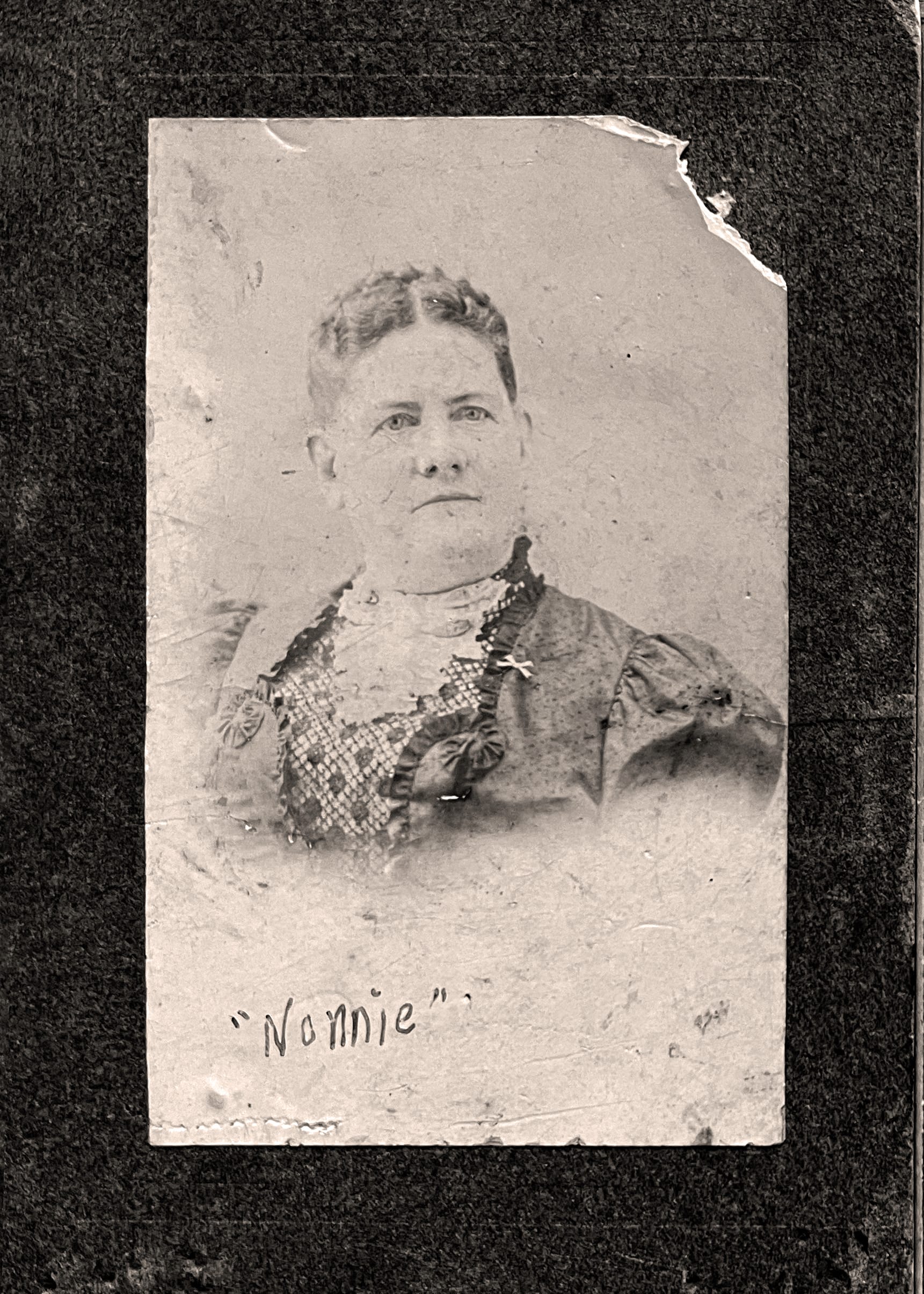 Nonnie was born June 25, 1850 to Leonard Larabee Hotchkiss (1812-1882) and his wife Louisa Mix Hubbard (1812-1903). Louisa's father, Ezekiel Hotchkiss (1785-1849) had been an alcoholic who died of this disease. Family tradition had it that Louisa's sister Sarah and her husband George H. Porter (1819-1905) had lost several babies. Leonard and Louisa's family was already quite large by 1850 — with seven children ranging in age from 16 to 5 years old — so when Alta was born she was given to her mother’s sister to be raised as a Porter. The baby was originally named Sarah Elizabeth, after her aunt, but then her adoptive parents changed her name to Alta to avoid confusion.