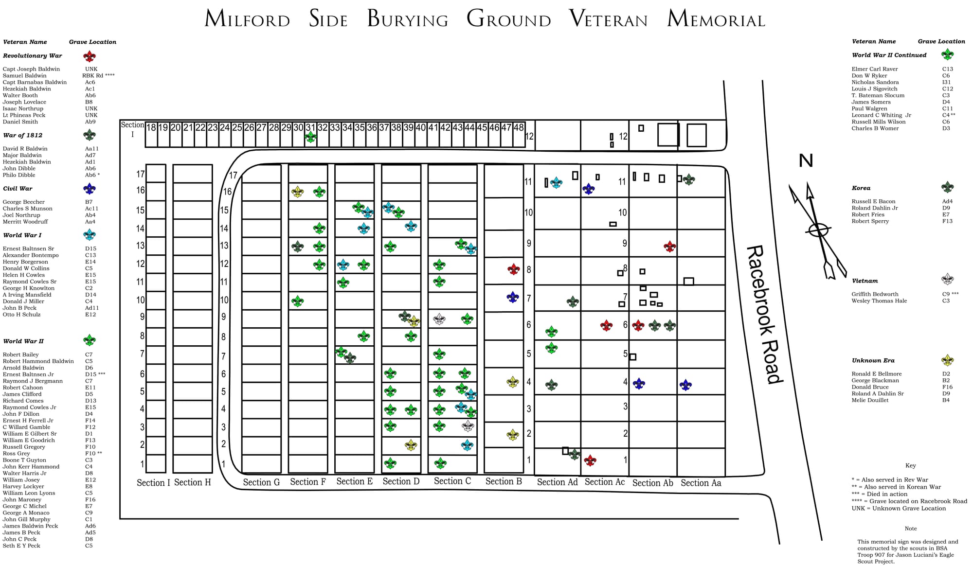 Memorial Day, initially called Decoration Day, is an annual commemoration honoring those who died while serving in the Armed Forces. Observed on the last Monday of May, on this federal holiday volunteers place American flags on the graves of military personnel in our local cemeteries, while family and friends also visit to pay their respects at the graves of those who served. But who were the men and women from Woodbridge who served, and how much do we know about their final resting places? Let's begin by looking at the details of a recent Eagle Scout Project...