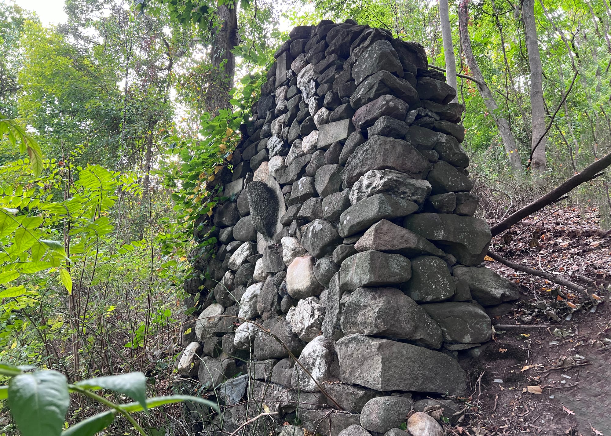 A TownHistory reader recently asked about the seemingly mysterious stacked stone monument that's sometimes visible from Amity Road through the tree line on the left, as you come from New Haven, just north of the intersection with Bradley Road.
