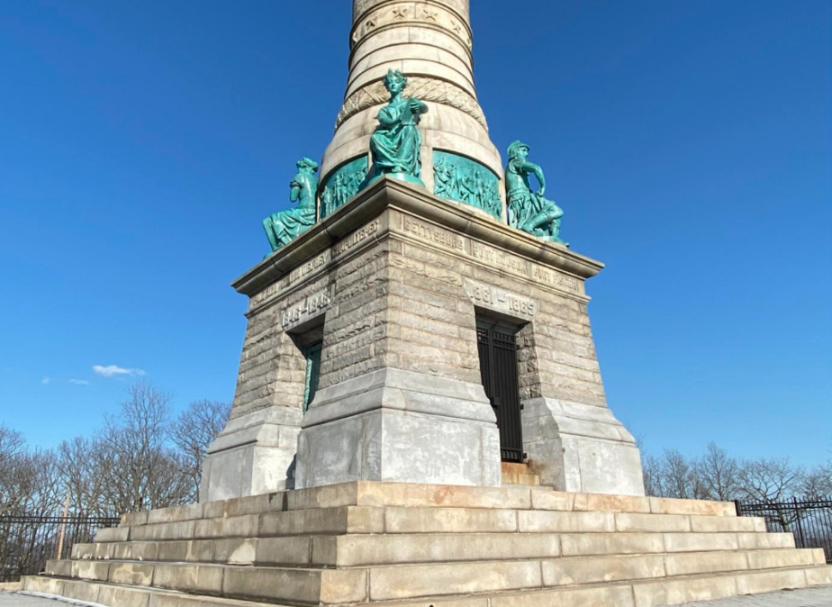 Perhaps Smith & Sperry's most ambitious and well-known project was the construction of the Soldiers and Sailors Monument atop East Rock, which commemorates those who served in the Revolutionary War, the War of 1812, the Mexican-American War, and the Civil War (also mentioned in a previous essay). This towering granite structure, standing 110 feet high, was the subject of intense civic debate and lawsuits before the final design was chosen. Willis Smith was responsible for overseeing its construction, which took place between 1886 and 1887. The work required the invention of an adjustable derrick system that allowed workers to carefully position the massive stone blocks, as well as a specially designed hoist that enabled them to close the monument’s top without the need for high-risk climbing. Remarkably, despite the scale of the project and the dangers of working at such heights, no fatal accidents occurred.