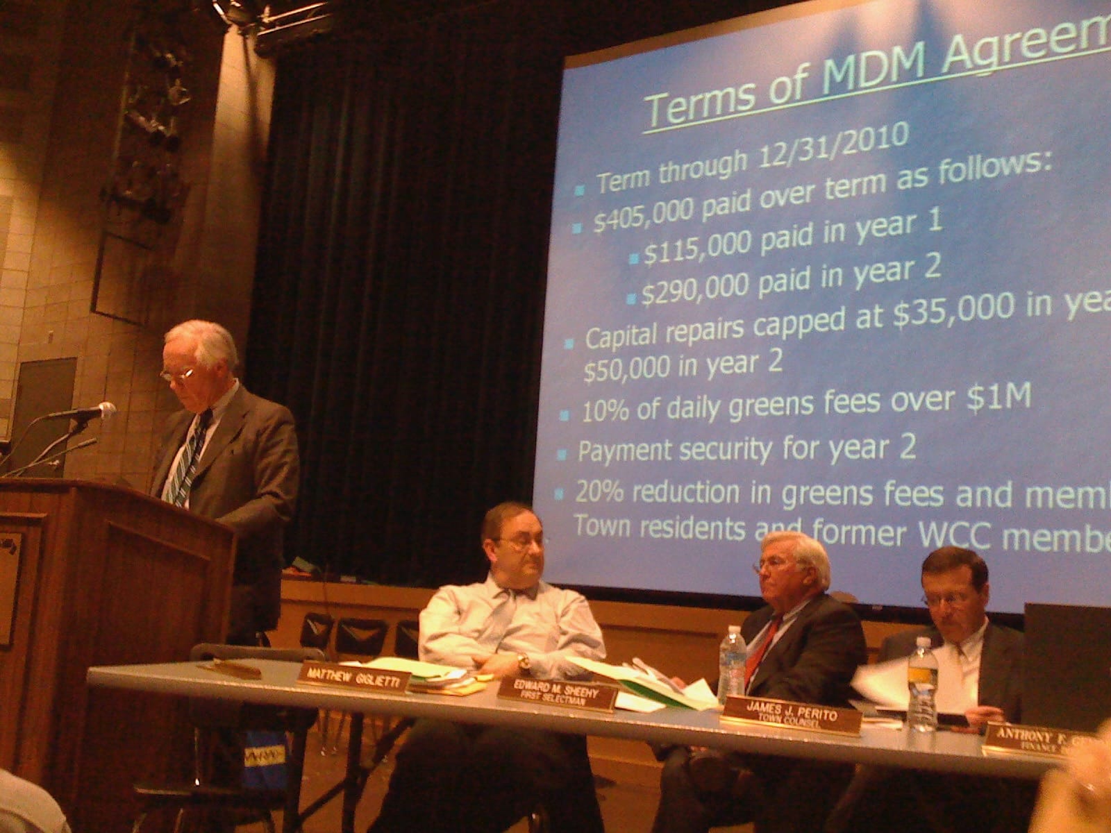 As negotiations progressed, a Special BOS meeting took place on April 7, 2009 and was shown live on the WGATV channel 79 on Cablevision (this predates the WGATV YouTube channel). It included discussion of the management of the golf course, among other topics.