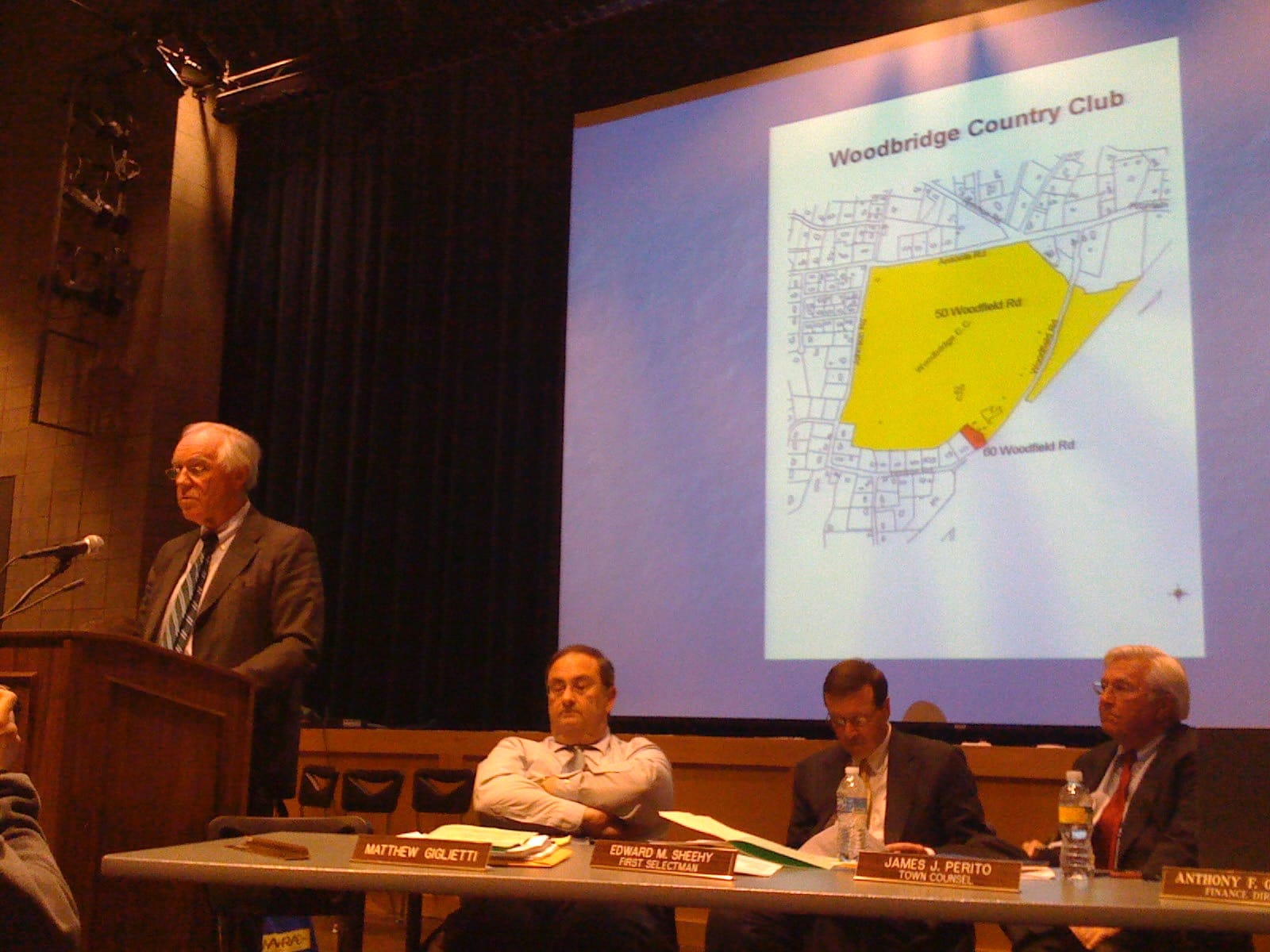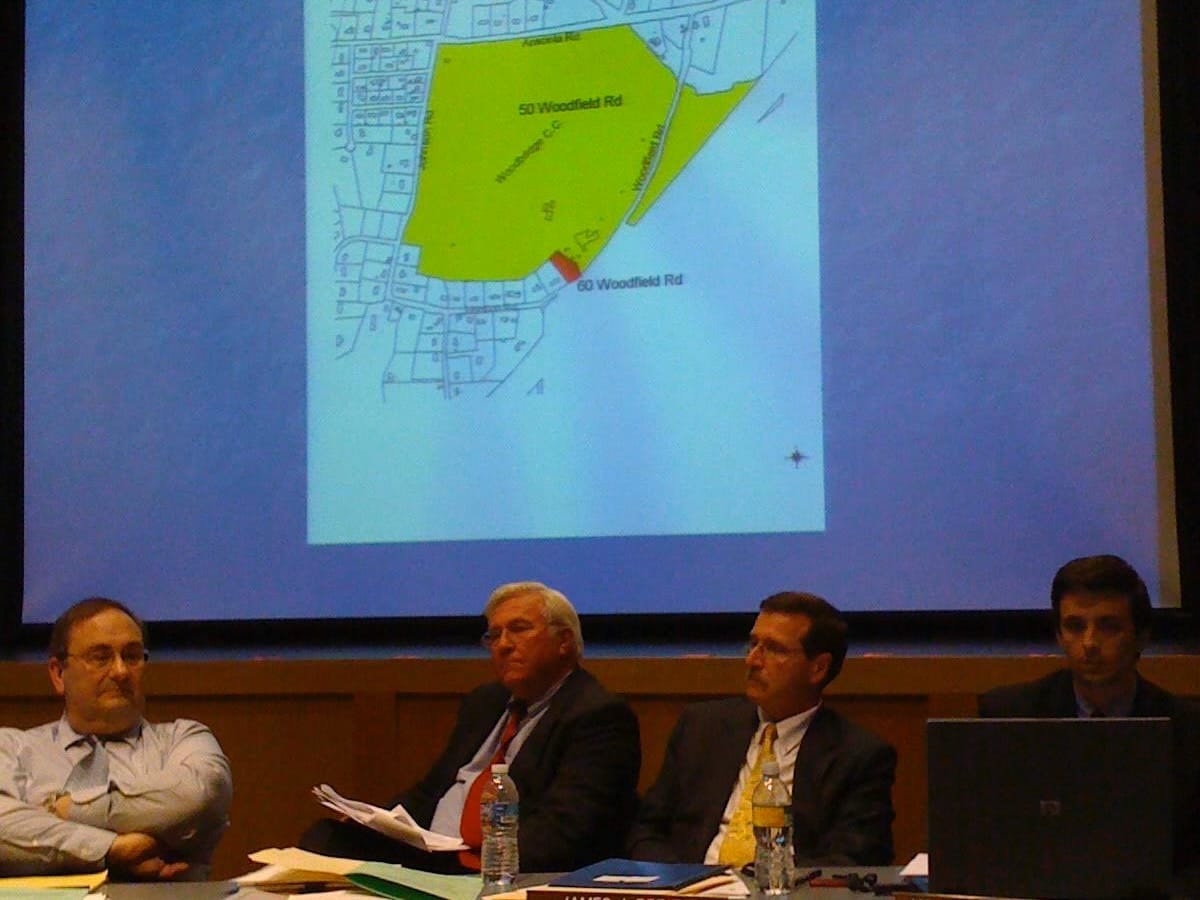 So let's begin the tale in the early months of 2009, when the topic of a possible sale of the Woodbridge Country Club, as it was known at the time, approximately 150 acres of property on Woodfield Road first appeared on the agenda of meetings of the Board of Selectmen. After initial discussion, the Selectmen voted to set a date for a Special Board of Selectmen Meeting to be held in the Center Gym on March 25, 2009 to present information and hear from the public.