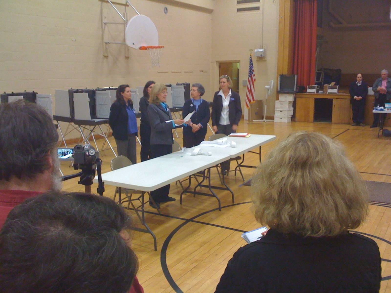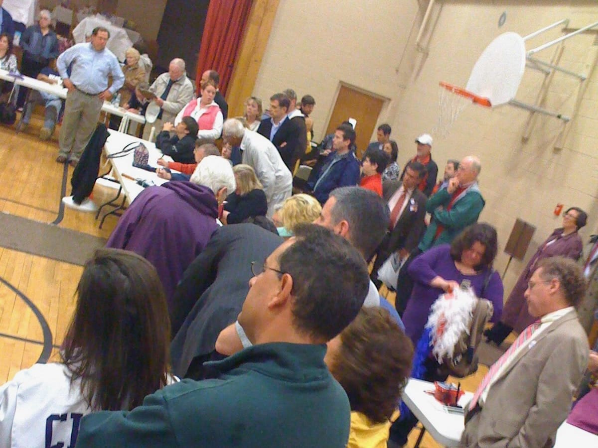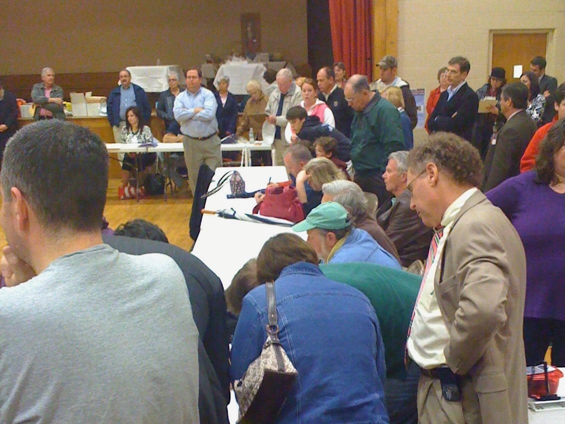 The Woodbridge town election — to determine who would serve as First Selectman, as members of the Board of Selectmen, and as members of several other elected boards — was held on Monday, May 4th, with voting taking place from 6 AM to 8 PM. Residents again returned to the Center Gym to hear the results announced shortly after the polls closed.