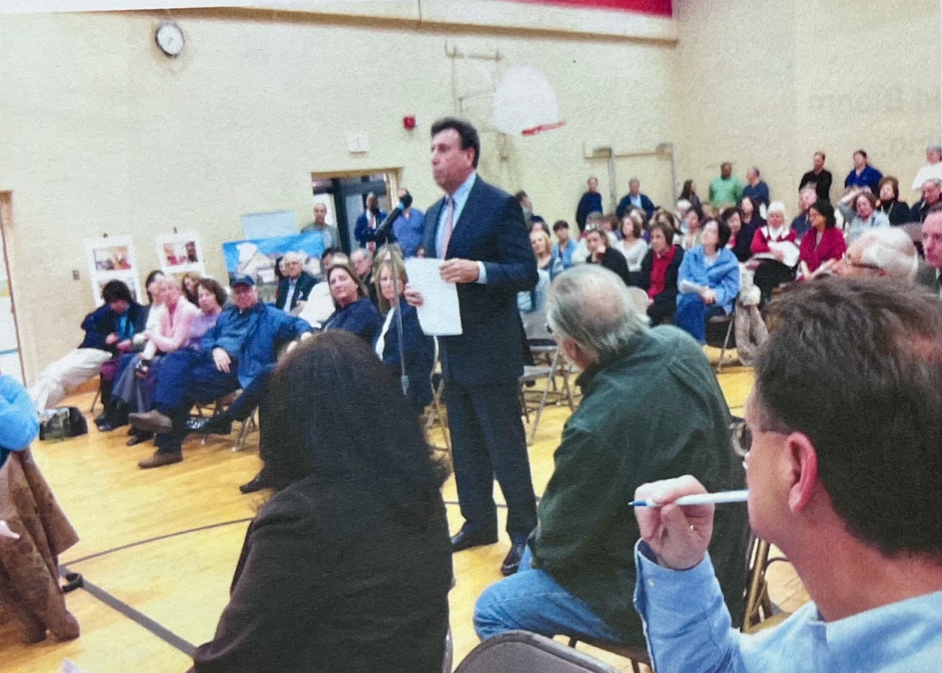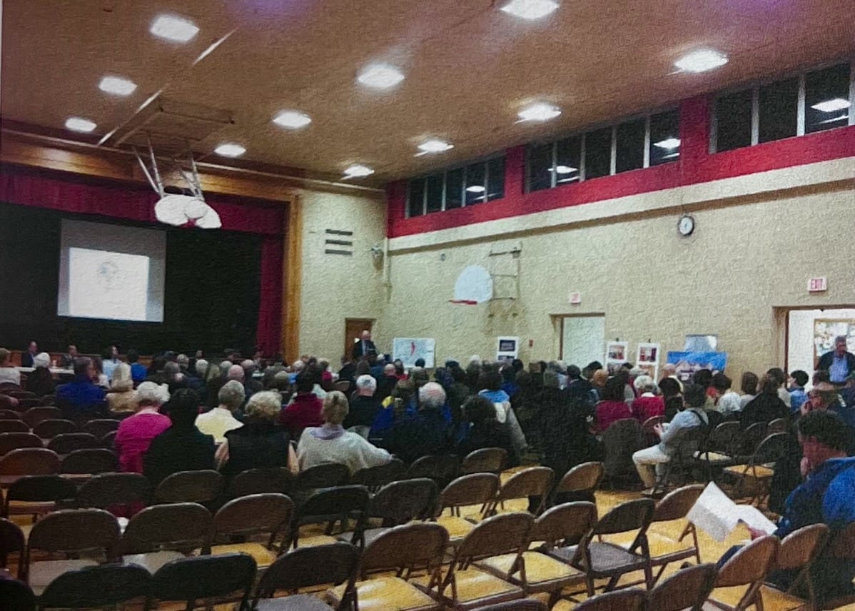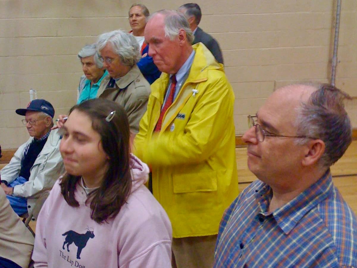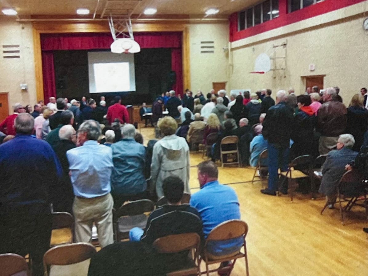 Only those voters present at the time the question was called by the moderator of the Town Meeting would decide the outcome of this purchase proposal. No one knew for sure how many of the assembled would vote yes, by standing and raising a green slip of paper when the phrase “All those in favor” was called out.